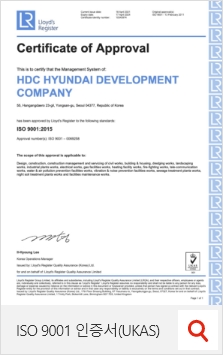 HDC현대산업개발은 "우리는 풍요로운 삶과 신뢰할 수 있는 세상을 만든다."는 가치아래 품질경영시스템의 효과적인 운영을 통해 고객의 더 큰 만족과 행복을 추구하고자 아래 사항을 적극적으로 실천한다.