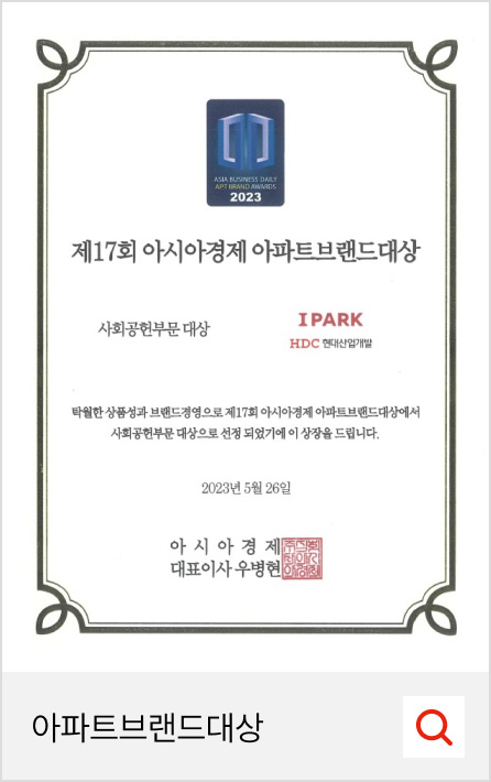 HDC현대산업개발은 상생경영 강화를 위한 지역사회 공헌과 협력회사 동반성장에 힘써온 결과로 아시아경제 아파트브랜드대상 사회공헌 부문을 수상했습니다.