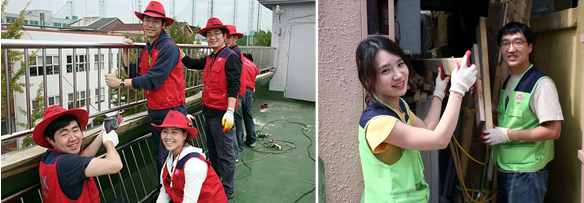 또한, 본사 소재지인 서울 용산지역을 중심으로 연탄배달, 거주환경 개선 벽화그리기 봉사 등 다양한 봉사활동을 펼치고, 사내 각 본부별로 릴레이 봉사활동도 꾸준히 이어가고 있습니다.